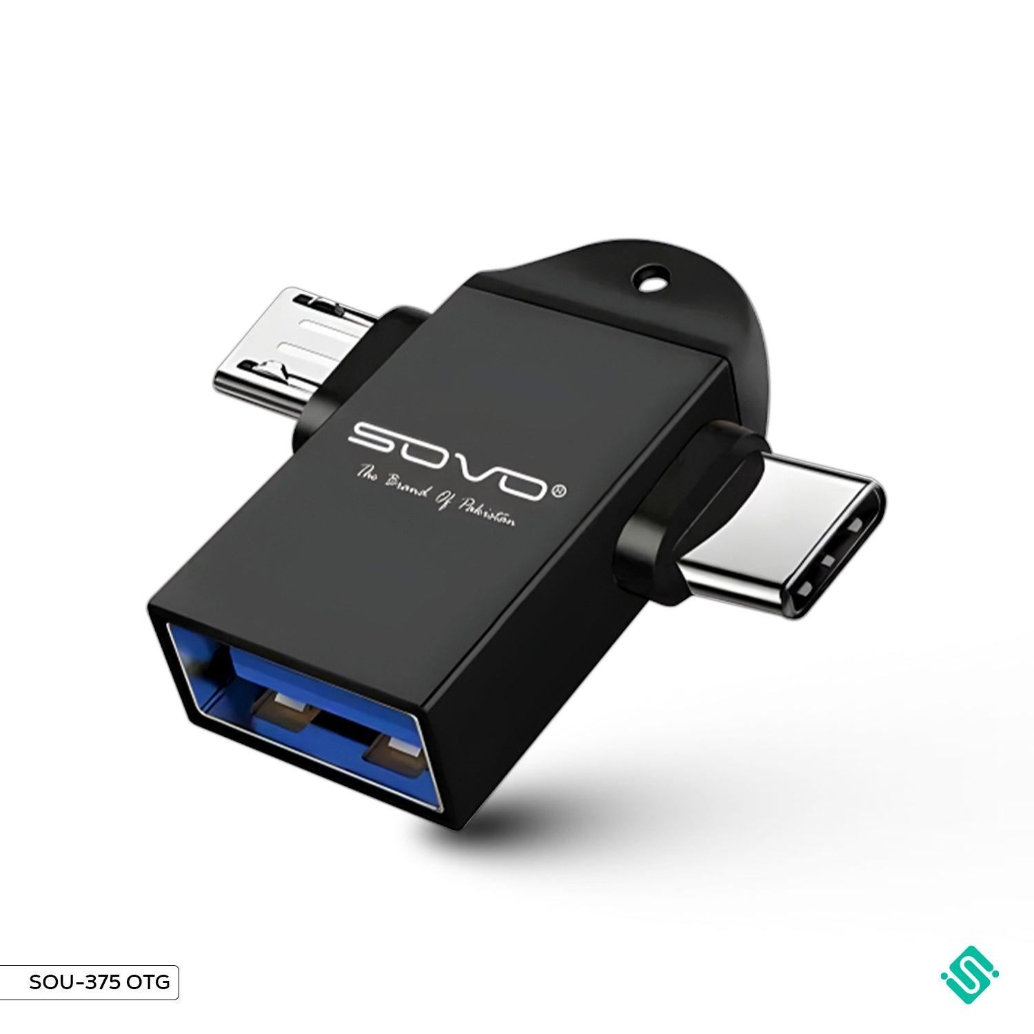 The SOVO SOU-375 OTG adapter is designed for users who need versatile data connectivity solutions. It supports both Micro USB and Type-C devices, making it a convenient tool for transferring data or connecting USB peripherals to smartphones, tablets, and other devices. Its compact, plug-and-play design ensures that you can use it on the go, without the need for additional software or drivers. Whether you're connecting a flash drive, keyboard, or mouse, this adapter guarantees seamless performance.